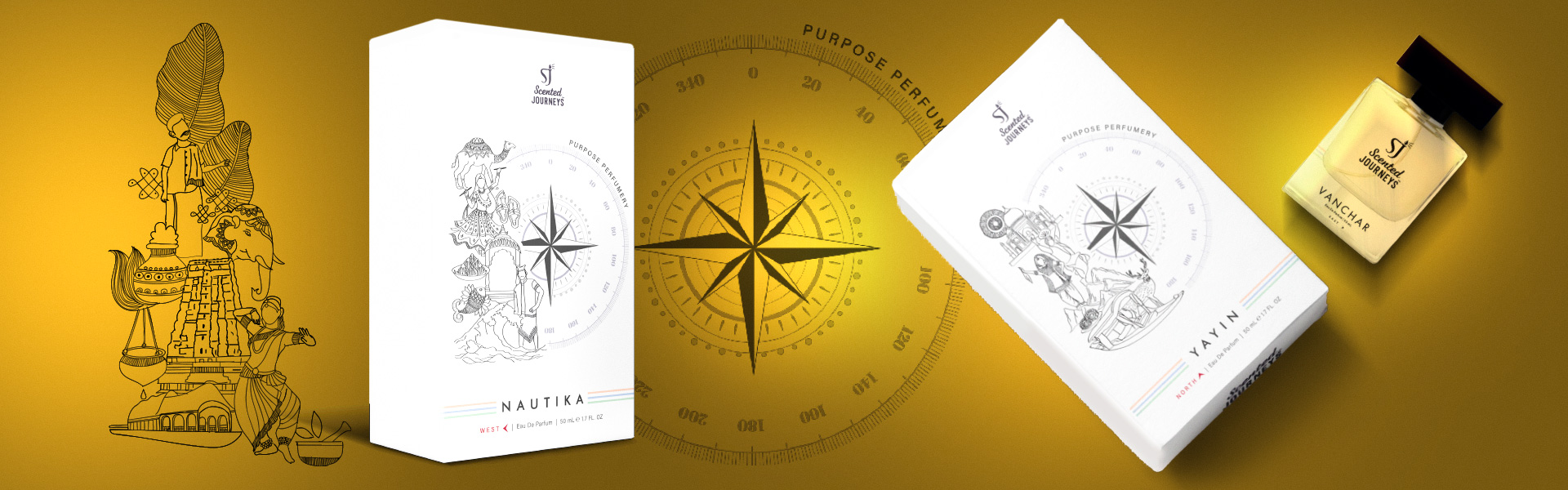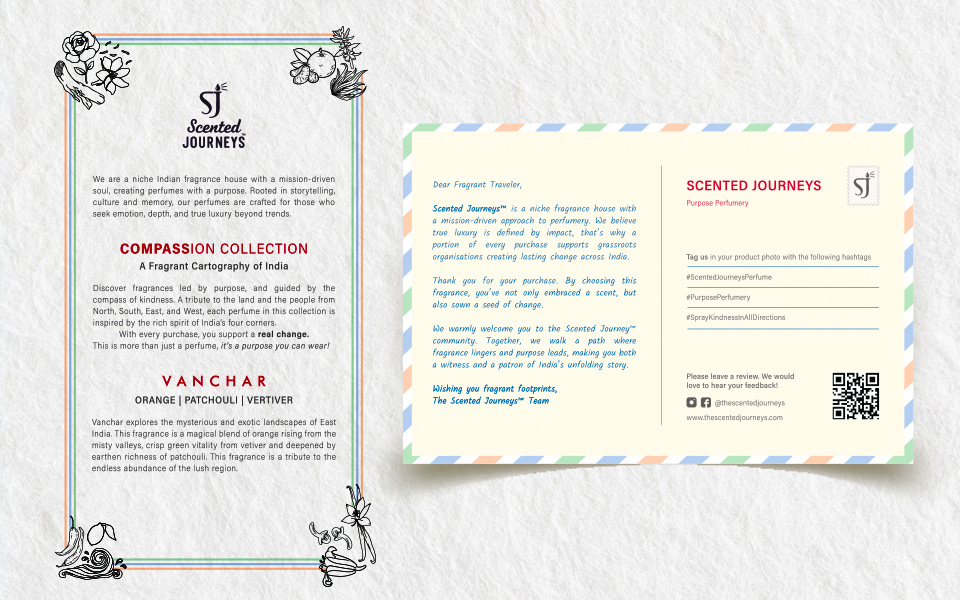 Scented Journeys is a niche fragrance house rooted in culture, memory, and purpose - creating perfumes that carry stories beyond scent. Our role was to translate this depth into a unified packaging identity that feels unmistakably Indian, yet refined for modern luxury. From structural clarity to a consistent visual language, we built a system that holds every collection together while allowing each story to stand distinct. The result is packaging that expresses the brand’s world instantly, strengthens recognition, and creates a scalable foundation for future journeys.